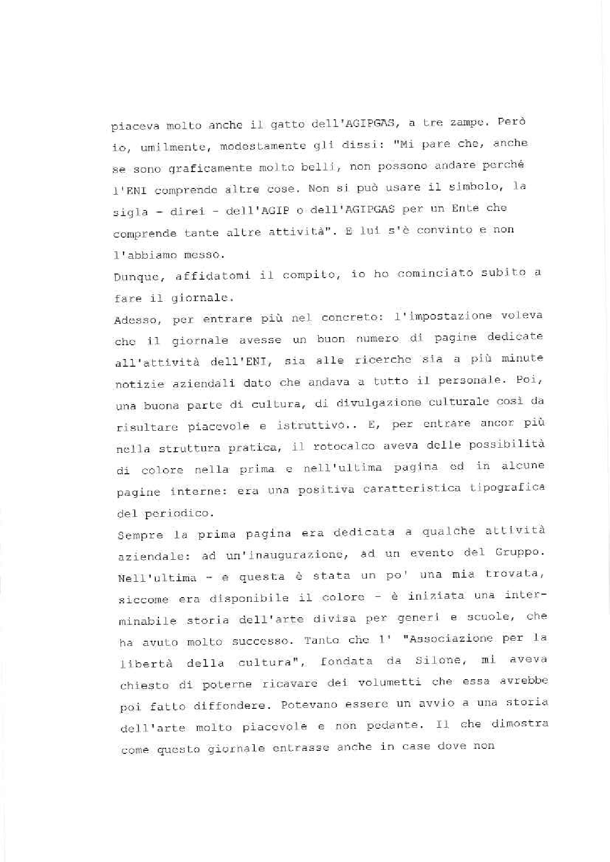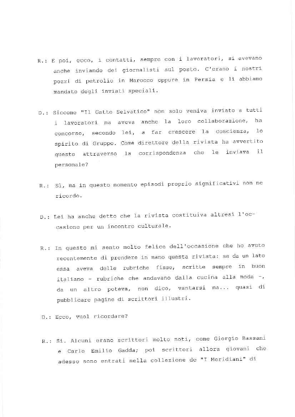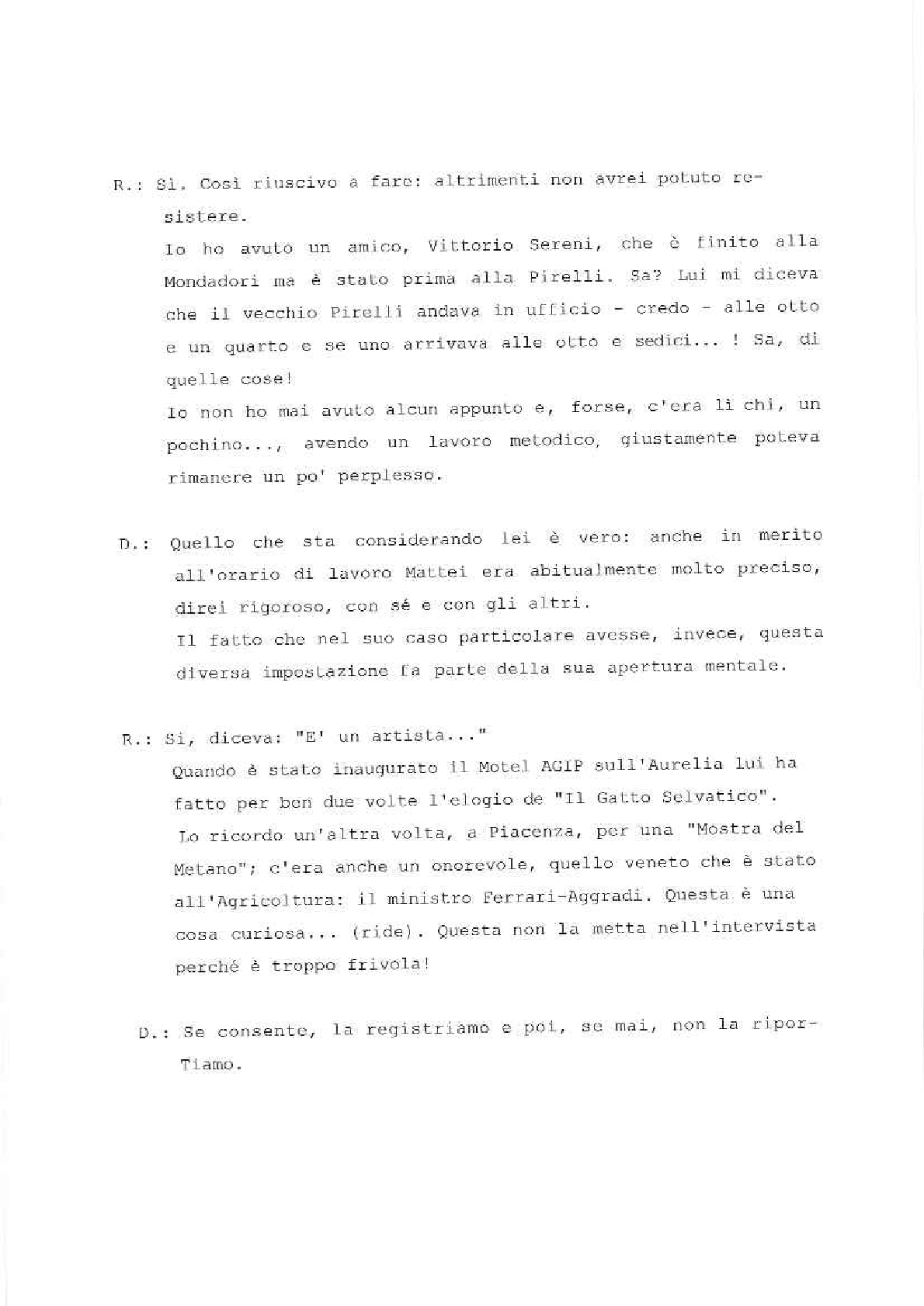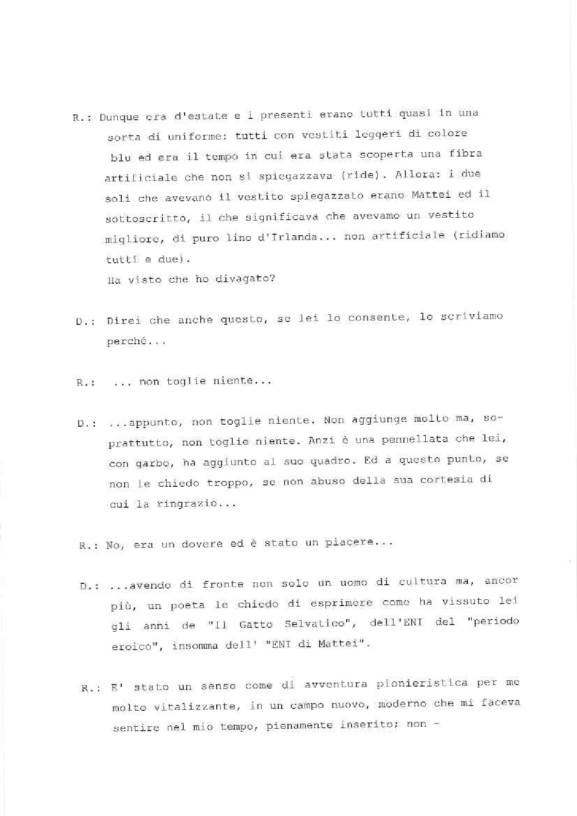 Sono lieto di porgere il mio saluto augurale al “Gatto Selvatico” la nuova rivista che si propone di assolvere il compito – modesto, ma essenziale – di servire da ideale punto di incontro per tutti coloro che fanno parte della grande famiglia del Gruppo E.N.I. È una famiglia in continuo aumento, così come in continuo aumento sono l’importanza e la prosperità delle società affiliate. Il numero di coloro la cui sorte è legata a quella del nostro Gruppo non soltanto è altissimo – tanto alto che solo poche aziende di vecchia data ne possono vantare uno superiore –, ma è per giunta estremamente frazionato, secondo le molteplici esigenze della nostra industria.
