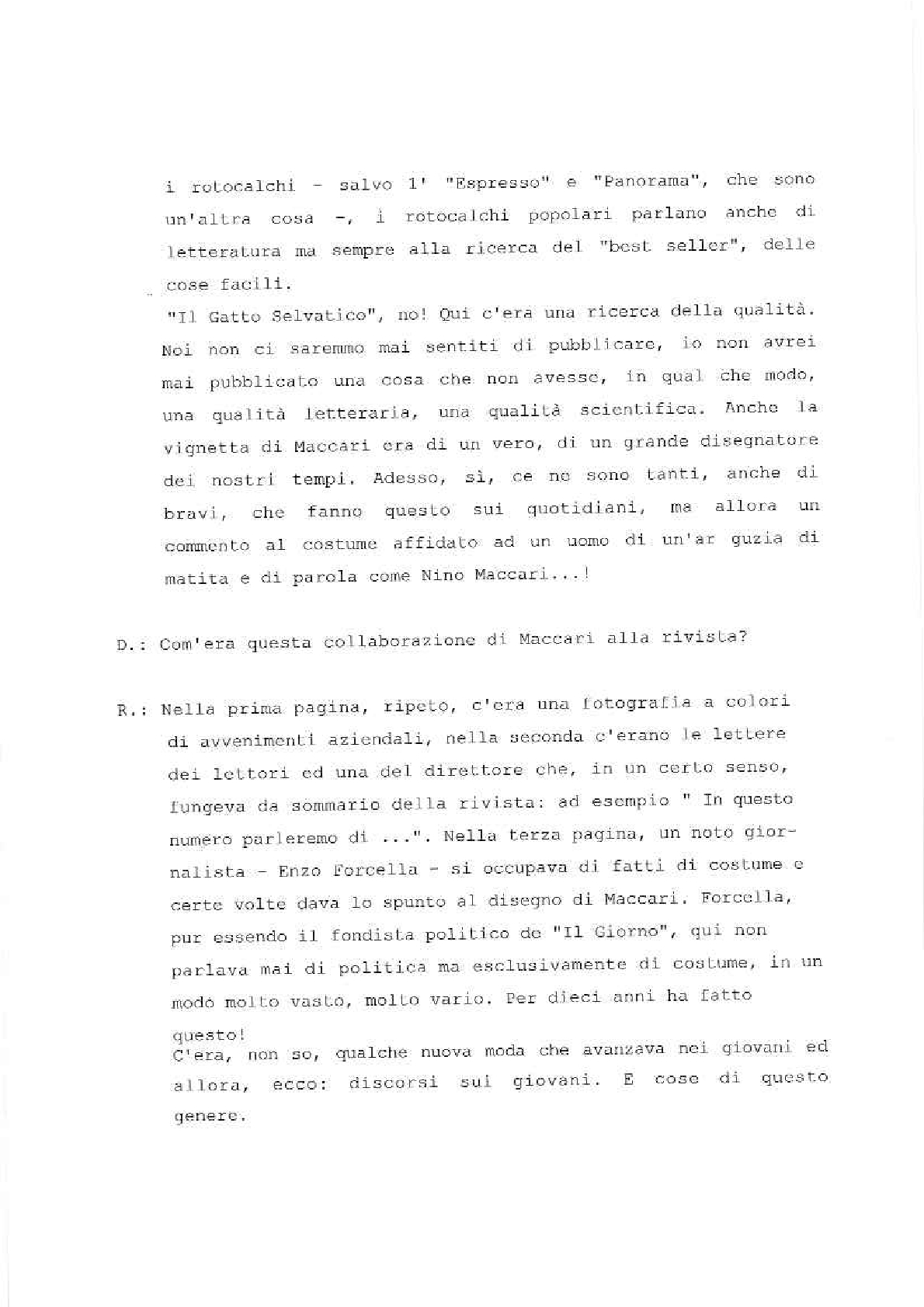 Più che opportuno, indispensabile, era un mezzo di comunicazione tra tanti uomini operanti in luoghi diversi ma uniti da interessi e comuni propositi. Il “Gatto Selvatico” sarà questo mezzo di comunicazione, ma anche qualcosa di più: sarà il simbolo della nostra comunità, il documento dei nostri sforzi, il discreto consigliere di quanti vorranno un parere amichevole, un chiarimento tecnico o genericamente culturale, una sobria informazione sui principali avvenimenti del nostro tempo.