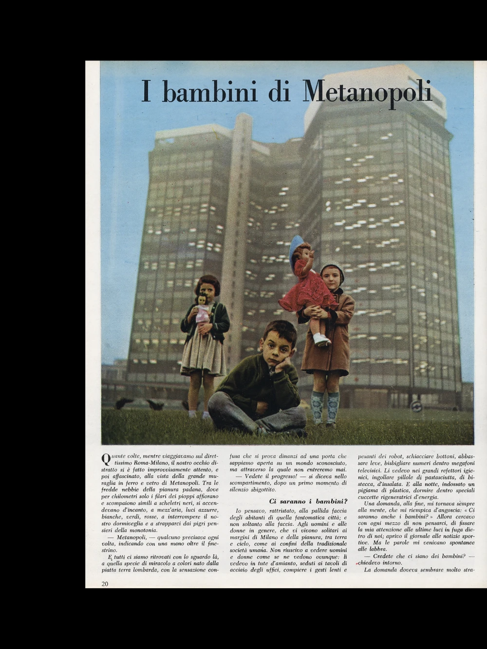Nel luglio del 1955 usciva il primo numero della nuova moderna rivista di eni, “Il Gatto Selvatico”. Pagine a colori, vignette, resoconti di vita aziendale, racconti di autori importanti e tante rubriche per la famiglia: medicina, arredamento, moda, cucina, persino una sezione dedicata ai neologismi. Attilio Bertolucci, che la dirige, ha in mente un progetto, condiviso e discusso con Enrico Mattei: fare del house organ aziendale uno strumento d’identità della grande famiglia eni.
