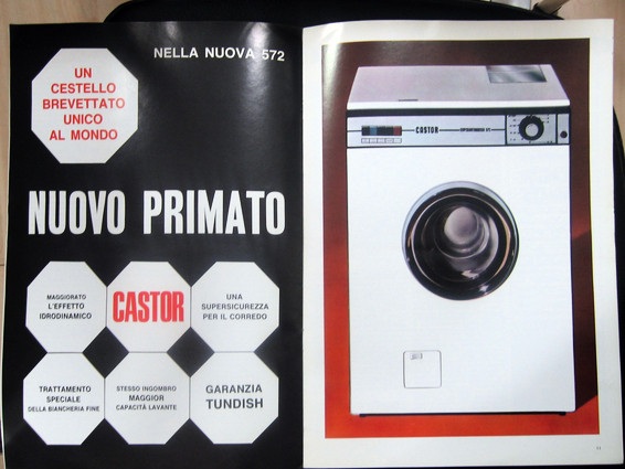 Le scelte editoriali appaiono vaghe e scarse le energie redazionali dedicate all’ house organ: il n. 11 del 1966 affianca inserzioni pubblicitarie a tutta pagina degli ultimi modelli di lavatrici e estemporanei contributi tecnico-pratici (Le acque dure, del dott. Camillo Buratti, “consulente di idrologia di alcune fra le principali aziende italiane”, sul problema dell’acqua nel lavaggio della biancheria, pp. 4-5); il resoconto e l’elenco dei vincitori di un’iniziativa promozionale (Concorso lavastoviglie, che premia, a estrazione, gli utenti delle lavatrici Castor con una nuova lavastoviglie, esplicitando la linea promozionale del “passaparola” e della “disinteressata propaganda” dei clienti già soddisfatti) e un lungo articolo corredato da diagrammi dal titolo: Le ricerche di mercato. Le lavatrici ed i lavastoviglie alla testa degli elettrodomestici nelle previsioni di vendite per i prossimi anni (pp. 8-9); riprende inoltre a doppia pagina un’inchiesta pubblicata dalla rivista di consigli ai consumatori “Quattrosoldi” (febbraio 1966), con la prova di funzionamento della lavastoviglie Castor Dishmatic (pp. 12-13) e chiude con due pagine di “Curiosità e notizie” da tutto il mondo, “brevi” tratte dal notiziario “Affari” edito da S.p.A. Torino Esposizioni, riguardanti, fra l’altro, l’inquinamento industriale in Urss, il consumo di carta da giornale in Usa, il mini-cubo-flash per le macchine fotografiche (pp. 14-15).