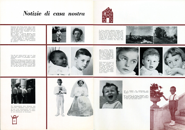 Le interviste al personale dei 5 stabilimenti è un appuntamento fin dai primi numeri, così come l’attenzione dedicate ad alcune opere aziendali (dopo l’Asilo Vittoria, il periodico si occupa dell’asilo di Longarone). Dal n. 2 è allegato «Il notiziario dei piccoli», supplemento di 4 pagine dedicato ai figli dei dipendenti e che durerà fino al 1962. Con lo pseudonimo di “Zio Rico”, il redattore Ketto Cattaneo presenta il foglio a loro dedicato contenente racconti e illustrazioni. In alcuni numeri del notiziario vero e proprio vengono anche pubblicate interviste ai bambini e viene costantemente dedicata ai loro genitori la rubrica I nostri bambini. Notevole è lo spazio dedicato alle colonie aziendali. Notizie di casa nostra è la rubrica tradizionalmente riservata agli eventi nelle famiglie dei dipendenti