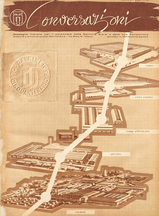 Per un approfondimento si vedano i saggi di Cinzia Martignone, Company town e politiche sociali nella comunicazione aziendale, in Dalmine 1906-2006. Un secolo d’industria, a cura di Franco Amatori e Stefania Licini, Dalmine, Fondazione Dalmine, 2006, pp. 271-293, e Barbara Cattaneo, Dal "villaggio modello" alla "grande famiglia". Impresa e società a Dalmine negli anni Cinquanta, in “Millenovecento”, n. 25, novembre 2004.