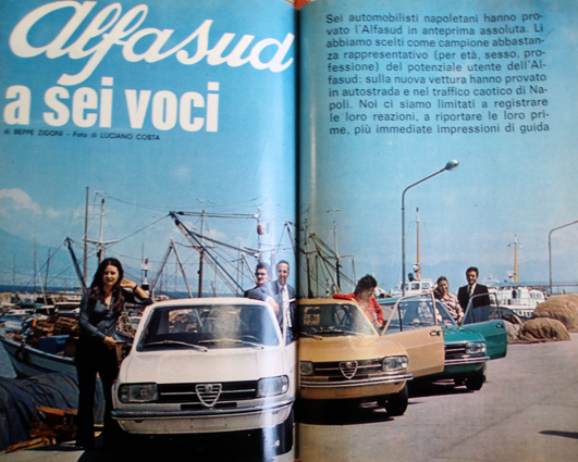In tutti i numeri prevalevano gli articoli di carattere sportivo, quindi quelli tecnici e in fine quelli legati ai temi della sicurezza e delle implicazioni sociali della motorizzazione. Vanno ricordati ad esempio interventi di Giorgio Bocca sull'ambiente (Contro lo smog, n.12 luglio 1969), del giornalista Guido Vergani su costume e società (L'universo in vetrina, n.5 ottobre 1967), dell'ingegner Orazio Satta, da anni progettista dell'azienda, sul rapporto tra velocità e sicurezza delle vetture (Innocente o colpevole?, n.5 ottobre 1967 ) e dal giornalista sportivo ed ex pilota Mario Poltronieri sull'importanza dei collaudi per la sicurezza delle vetture (La pista di Balocco, n.12 luglio 1969). In via generale trovano spazio anche discipline sportive quali la motonautica, che generalmente non vengono adeguatamente considerate dalla stampa sportiva (La motonautica, questa sconosciuta di Mario Bernasconi, n.11 aprile 1969). Moltissimi articoli affiancano la produzione automobilistica al mondo della moda e del cinema, spesso fotografando personaggi noti accanto alle loro Alfa Romeo o mentre provano le vetture (ad esempio La principessa e il bolide o Alfa e moda incontro felice di Elsa Robiola, n.5 ottobre 1967). Ampio spazio al lancio del progetto Alfasud, allo stabilimento di Pomigliano d'Arco e alla vettura, con interventi diretti del responsabile, l'ingegner Rudolf Hruska (n.21 ottobre 1971). Se per anni l'azienda era stata criticata per aver aver rappresentato un'anomalia nel panorama delle aziende statali, visto che il prodotto era destinato a una fascia sociale medio alta, con il progetto dell'Alfasud le critiche si concentravano sia sull'aspetto tecnico del mezzo, sia sull'opportunità di intraprendere una produzione realmente di massa con l'apertura del grande impianto di Pomigliano. Alle critiche degli alfisti rispondevano i tecnici come Hruska, motivando una continuità nel prodotto offerto, che a loro giudizio rappresentava un ottimo compromesso tra qualità, prestazioni e costi contenuti in modo da potersi collocare su una fascia di mercato più popolare. E proprio per questo motivo il lancio della nuova vettura veniva affidato sia a piloti che ne esaltavano le caratteristiche sportive (Tris d'assi per l'Alfasud di Consalvo Sanesi, Andrea de Adamich e Nanni Galli, n.24 luglio 1972), sia ad automobilisti comuni alle prese col traffico di tutti i giorni che ne valutavano l'affidabilità, il piacere di guida e la maneggevolezza (Alfasud a sei voci di Beppe Zigoni, n.24 luglio 1972). Dal punto di vista politico lo stabilimento meridionale rappresentava sicuramente una svolta considerevole per l'azienda, che andava a inserirsi nel difficile rapporto tra esigenze occupazionali del Mezzogiorno ed esigenze produttive (Chi vuole entrare all'Alfasud? Di Domenico Rea, n.21 ottobre 1971). La qualità dell'impianto e dei macchinari installati, esaltati in molti articoli comparsi sulla rivista, nei fatti non si dimostrarono però sufficienti a supplire le carenze organizzative e le forti tensioni con i lavoratori che negli anni seguenti si vennero a creare.