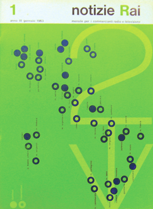 Per le copertine di Notizie Rai venivano solitamente scelte fotografie, spesso con viste dall’alto dei padiglioni espositivi e delle mostre, ma ancora più spesso delle sedi Rai, di cantieri aperti o di installazioni di nuove antenne. In qualche caso comparivano anche scorci di vita popolare o i retroscena dei programmi di successo. Non mancavano composizioni un po’ più elaborate, come ad esempio quella di Sergio Ruffolo, nel numero 4 del 1962, che illustrava i dati statistici agli abbonamenti Rai.