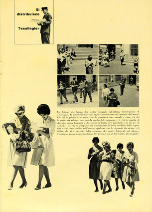 Nel complesso gli articoli offrono una significativa varietà di argomenti per dare un’immagine a tutto tondo della realtà aziendale e del contesto socio-economico in cui si colloca. Con il passare dei numeri si consolida un impianto definito. Per le relazioni esterne, al più tradizionale resoconto delle visite di stabilimento si affianca il resoconto di eventi legati alla specifica attività promozionale del cotonificio. Viene ricordata la collaborazione con partner che a vario titolo operano nel settore del tessile per organizzare eventi promozionali in Italia e all’estero. Valgono a titolo di esempio le 23 sfilate in altrettante città italiane da Trento a Palermo, organizzate nel 1960 dalla rivista femminile Grazia, dall’industria di macchine per cucire Necchi e dalla Legler con modelli realizzati da stilisti italiani e francesi e presentati da volti della televisione come Enza Sampò e Fausto Tommei. Sempre nel 1960 vengono organizzate 31 sfilate in Germania occidentale in collaborazione con la casa editrice Burda. Lo stesso scopo promozionale ha la partecipazione alle manifestazioni di alta moda a Firenze presso Palazzo Pitti, di cui «Tessilegler» dà notizia. Di eventi come le sfilate, l’apertura nel 1961 dei nuovi uffici nel grattacielo Pirelli a Milano, i numerosi riconoscimenti anche internazionali alla qualità dei tessuti, la rivista dà puntuale resoconto. Sul fronte interno la maggior parte degli articoli è dedicata ad aspetti tecnici della produzione. Personale dell’azienda, con competenze professionali specifiche redige, anche a puntate, articoli su varie fasi della produzione. Si tratta di articoli in cui si fa uso di un linguaggio specialistico: rimettaggio o incordatura dei fili, sbozzimatura, digrezzatura, sono alcuni degli argomenti trattati accanto a quelli più generali sul cotone, la tessitura, i telai, il candeggio, ecc. Lo spazio dato alle varie fasi del processo va messo in relazione ai numerosi articoli sullo “studio dei metodi e dei tempi” del lavoro, ai premi di rendimento in sostituzione della retribuzione a cottimo, all’organizzazione aziendale complessiva (con riferimenti ad esempio agli studi di Pierluigi Malinverni), ecc. Nel perseguimento dell’efficienza vengono indetti anche premi specifici: quello per i promemoria meglio compilati nella comunicazione interna fra i diversi uffici (n. 6, a. III, novembre-dicembre 1960), oppure quello per i migliori lettori di riviste della ricca biblioteca aziendale nel tentativo di coordinare un efficace sistema di rassegna stampa (n. 2, a. IV, marzo-aprile 1961). Agli articoli specificamente dedicati alla produzione si affiancano anche quelli dedicati ai vari uffici (vendite, paga, pubblicità, ecc.), all’ampliamento dello stabilimento, ai corsi interni di formazione del personale (ad esempio il ciclo delle Conversazioni sui problemi di oggi e di domani), che sboccano nel 1964 alla creazione del Centro di addestramento per il personale, al richiamo allo spirito di “collaborazione” tra dirigenza e maestranze. Nel n. 4, a. III, luglio-agosto 1960, con il titolo Miglioriamo insieme la qualità, l’amministratore delegato Matteo Legler sottolinea “la buona disposizione della Direzione nel considerare tutte le possibilità di miglioramento della maestranza. È ben evidente che è tanto più facile andare incontro alle richieste dei dipendenti, quanto più stretta è la collaborazione e quanto più solidali si è nel contribuire al raggiungimento degli obiettivi dell’Azienda”. Come solitamente accade negli house organ di questi anni, il riferimento a una “famiglia aziendale” interclassista è sostenuto da una serie di rubriche e articoli ad hoc. Dal n. 5, a. III, settembre-ottobre 1960 e fino alla fine del periodico, una nuova rubrica Lettere al direttore si propone di “intensificare e facilitare il colloquio tra la Direzione ed i Dipendenti”. Questa rubrica è di fatto un ulteriore canale per parlare di aspetti specifici della produzione, come di questioni più generali di organizzazione. Notizie di casa nostra (con informazioni su assunzioni, pensionamenti, commissioni interne, nascite, morti, ecc.) è una delle poche rubriche costantemente presenti ed è supportata da un significativo corredo di articoli specifici sui premi di fedeltà aziendale, sulle attività dopolavoristiche e di solidarietà (Avis, Opera San Vincenzo, ecc.) sulle case dei dipendenti realizzate o finanziate dall’azienda, ecc. Il coinvolgimento dei dipendenti/lettori nella stesura del giornale aziendale fa parte di questa stessa strategia di “relazioni umane”: il concorso indetto per il titolo del giornale (di cui si è già detto), gli articoli scritti da dipendenti/lettori ad alcuni dei quali venne riconosciuto il premio Pacces, il referendum indetto tra i lettori su pregi, difetti e desiderata per il giornale aziendale, ecc. Menzione a parte va fatta per l’attività del Circolo fotografico e del Cineclub Bergamo sezione Legler. Oltre ai numerosi concorsi fotografici e cinematografici nazionali ma anche internazionali a cui le due realtà partecipano, la Direzione aziendale coinvolge il Cineclub nella realizzazione di films didattici sul metodo di preparazione dei prodotti. Il n. 5, a.IV, settembre-ottobre 1961 dà significativo risalto all’iniziativa. Inoltre “un particolare da sottolineare è il contributo che dà la rilevazione cinematografica nello studio dei metodi e dei tempi specie nelle operazioni di brevissima durata. Infatti proiettando poi al rallentatore i particolari di lavorazioni veloci si possono rilevare agevolmente gli eventuali difetti ed errori”.